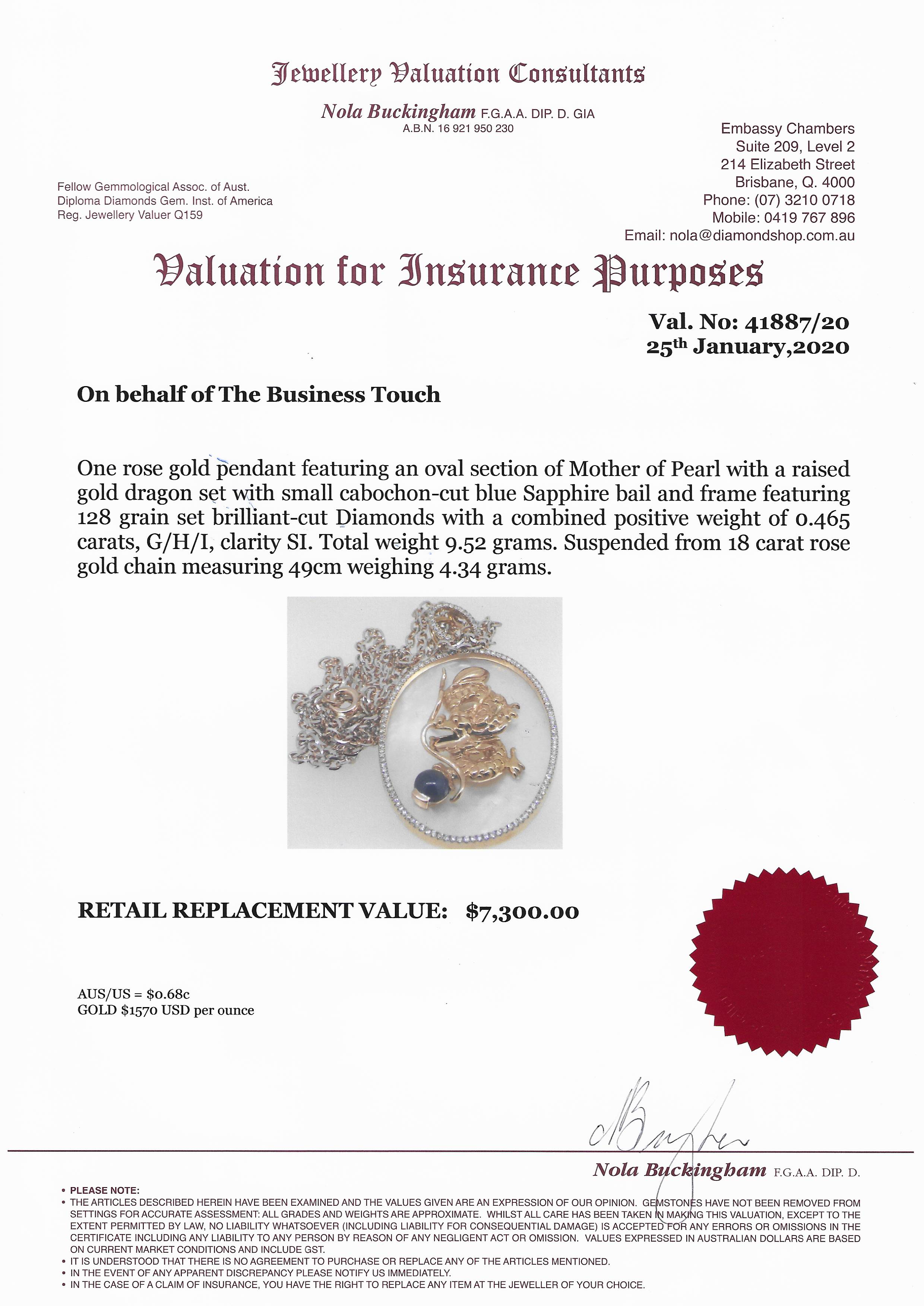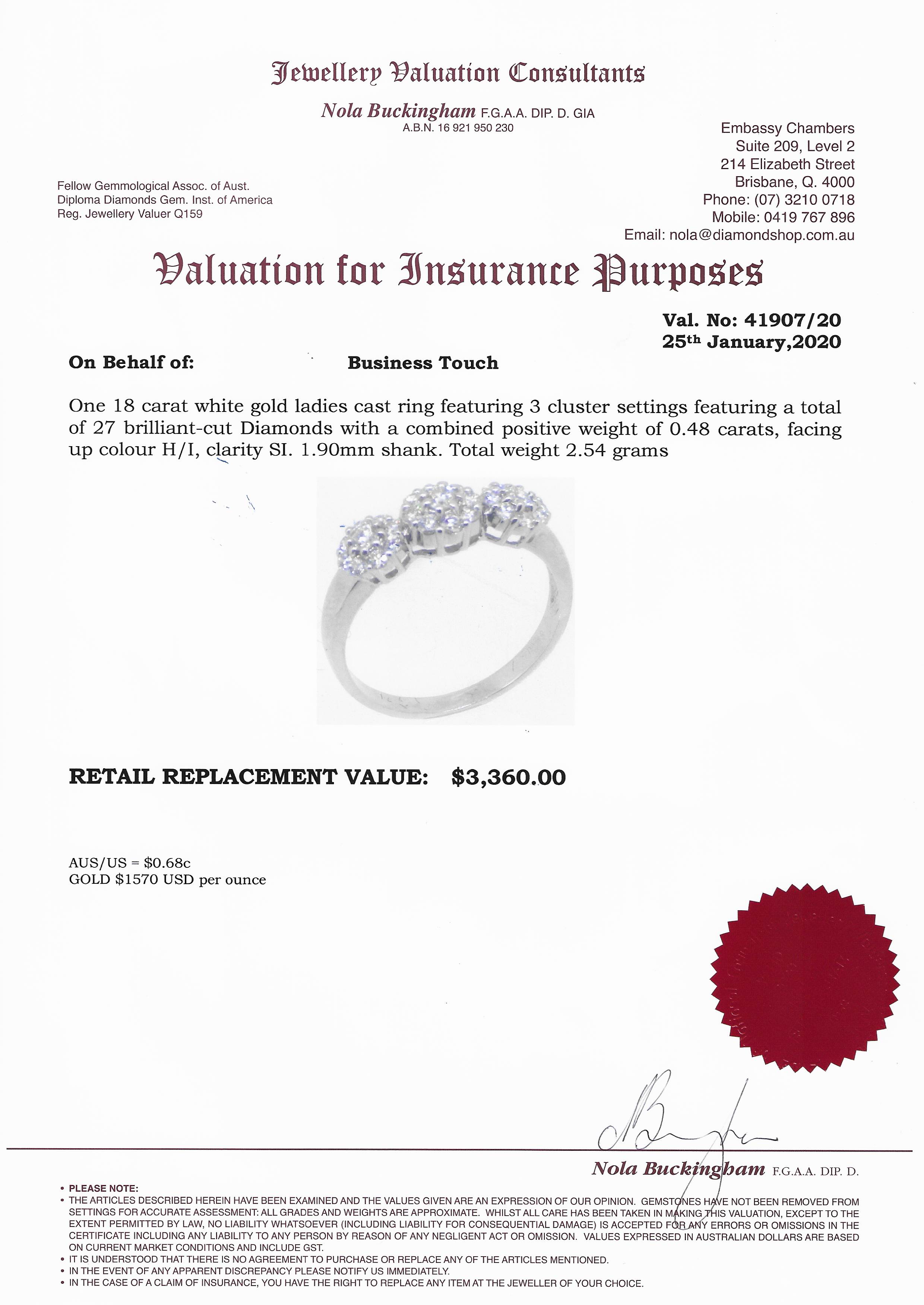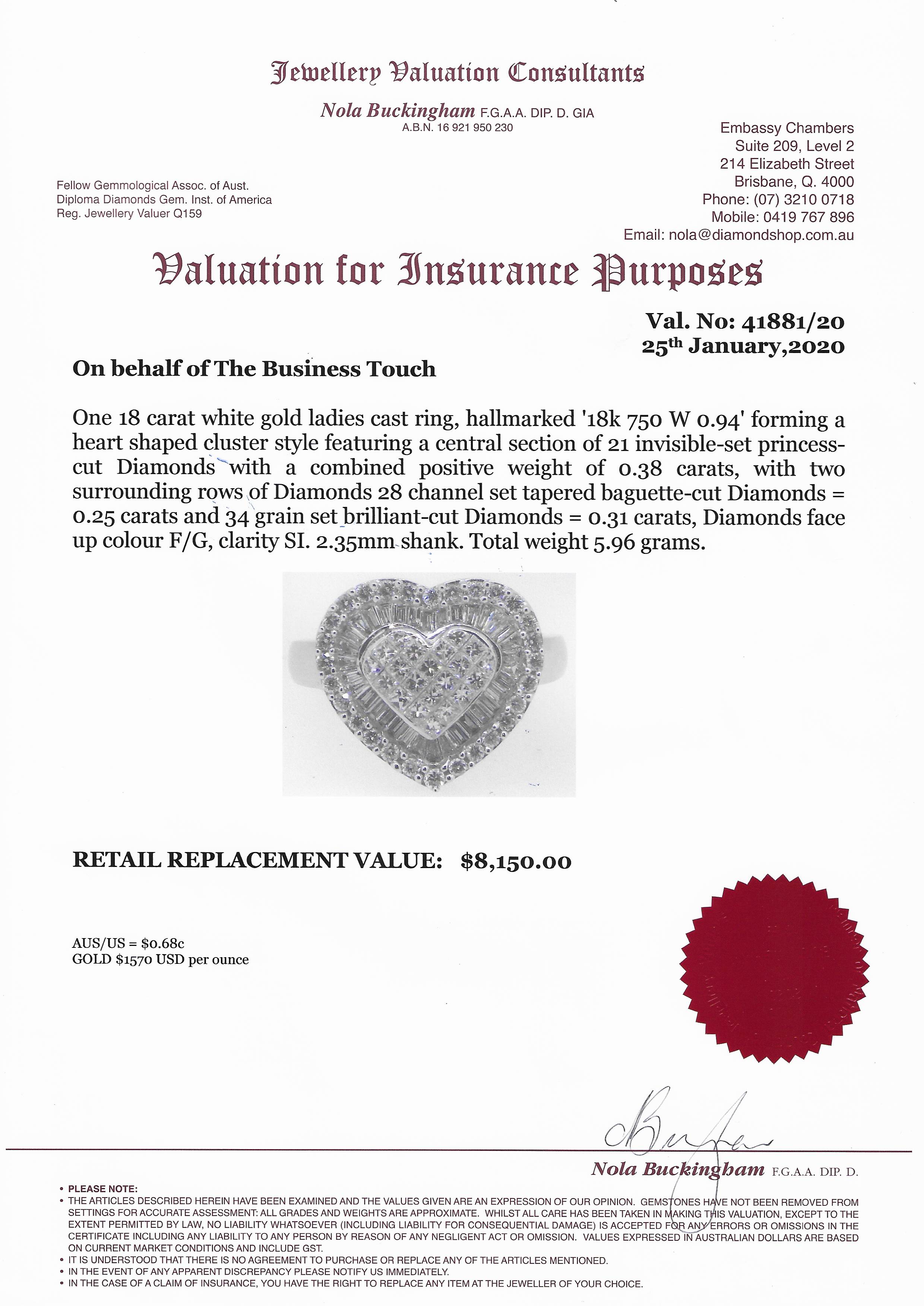 ALL JEWELLERY PIECES COME WITH A "CoC" CERTIFICATION AND VALUATION CERTIFICATE